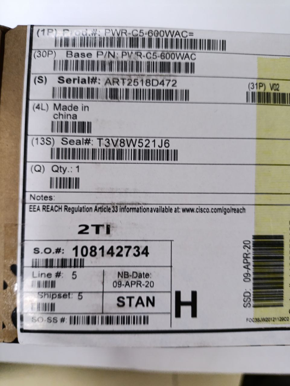 Блок питания 600 Вт Cisco PWR-C5-600WAC
