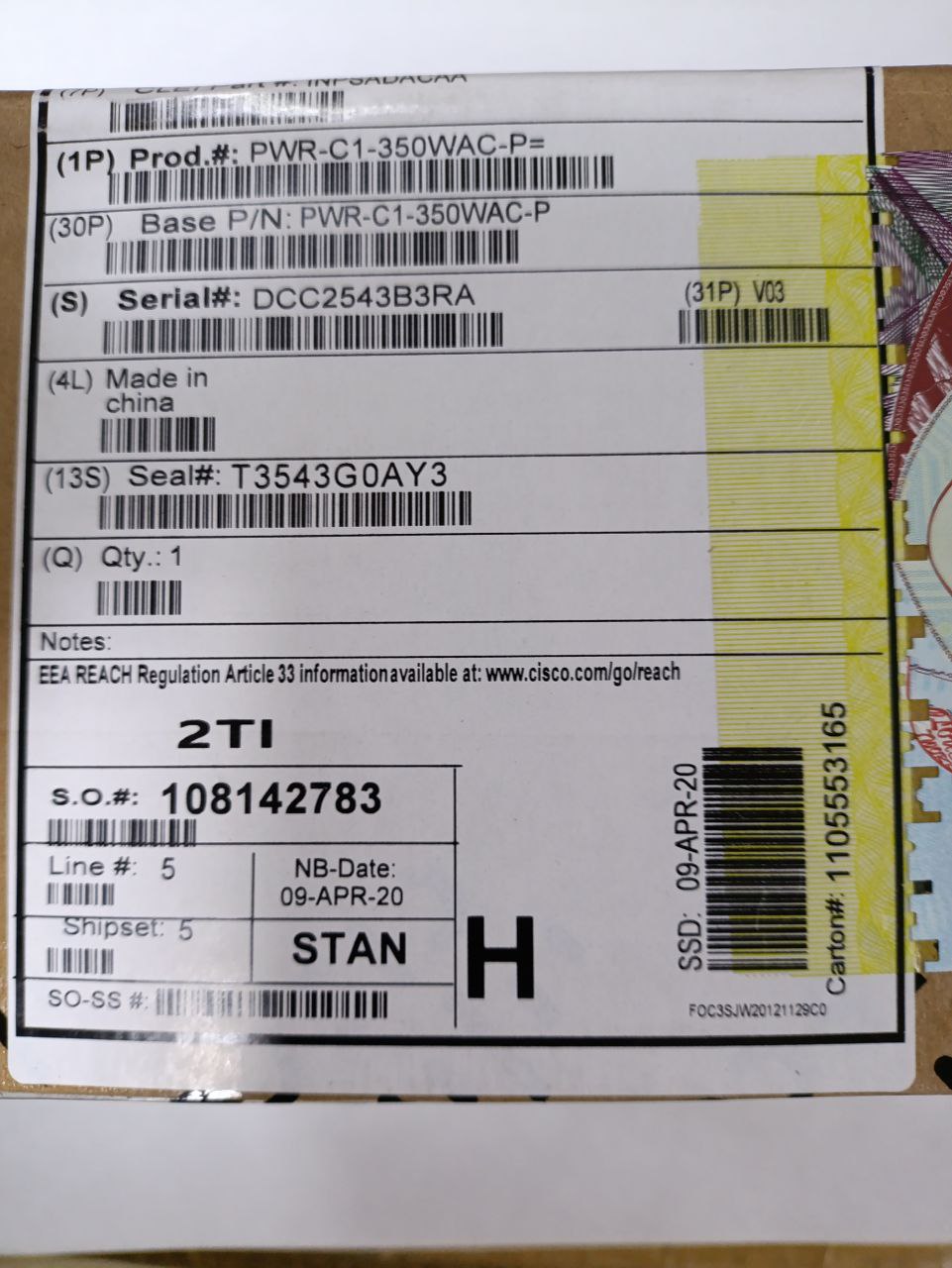 —Блок питания 350Вт Cisco PWR-C1-350WAC-P AC 80+ platinum Config 1