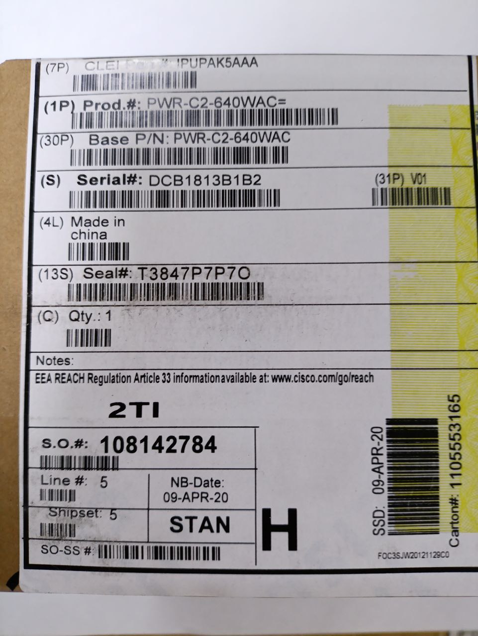 —Блок питания 640Вт Cisco AC PWR-C2-640WAС